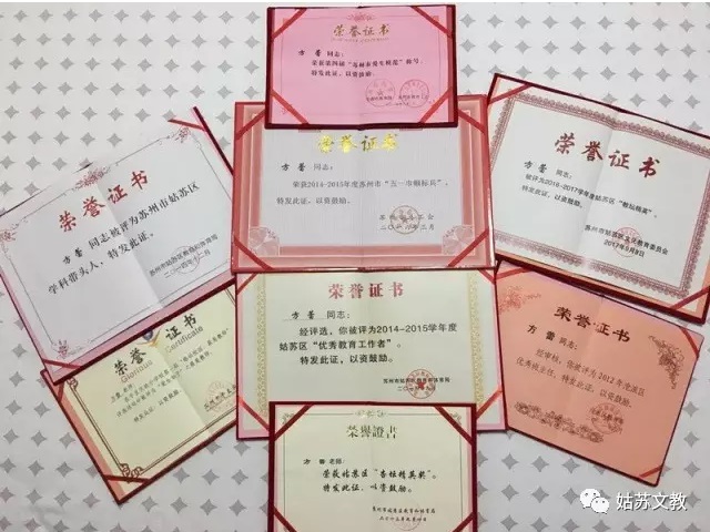 她善于创新,教风踏实又不失活泼,业务精湛,是姑苏区骨干教师。曾获得“市五一巾帼标兵”、“市爱生模范”、“区优秀班主任”、“区优秀教育工作者”、“区杏坛精英”等荣誉称号。2012年,《猴子种果树》一课获得苏州市语文评优课一等奖,多次参加区课改观摩、无锡交流活动和省“教海探航”研讨活动,获得好评。方老师将一如既往地用爱心奉献自己的青春,工作在平凡的岗位上!