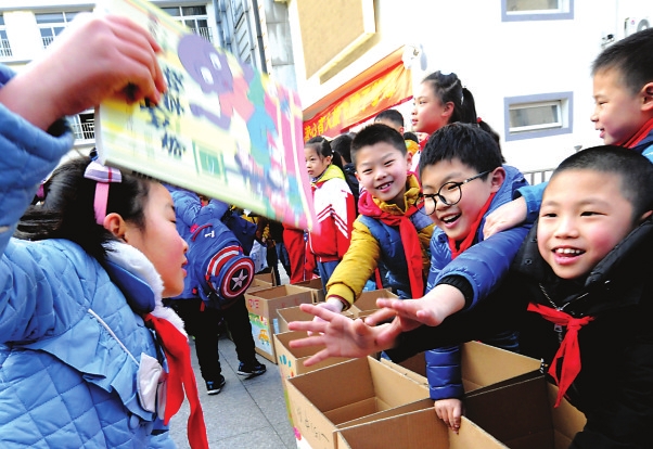 昨天,平直实验小学开展的第五届“衣加衣学雷锋 书香浸润童年”为主题的再给贵州乡村一所贫困小学筹建“爱心图书室”集中捐书行动热闹开场,当天共集得各类图书达1700余本。 记者 王建中摄