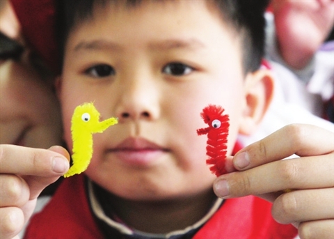 更值得称道的是,学校多姿的艺术课程还能结合姑苏地域的传统文化,打造出独特的“苏式美育”名片。轻粘土做出可爱的小老虎头,五彩的海绵纸做鞋底和鞋帮,小朋友学着老师的样子,一针一线缝起来,不多会儿,一双双可爱稚气的虎头鞋就完成了。还有玲珑的绢宫扇、精致的盘扣……吴地的古韵今风与小小课堂融合,迸发出创新的活力,所谓传承和发展,不就蕴含在孩子的双眼和双手中吗?