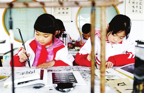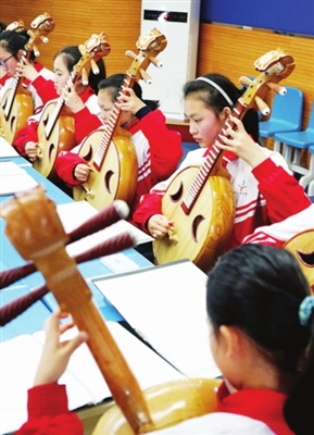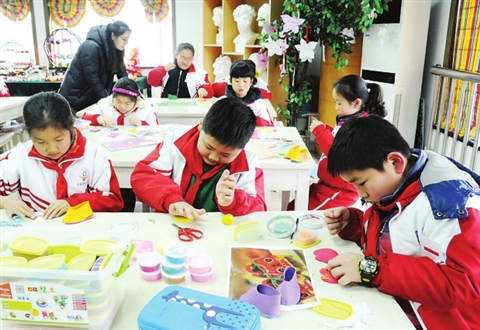 绢宫扇、盘扣、虎头鞋、中阮、国画、书法、经典诵读、儿童简笔画、剪纸、彩陶、趣味手工……当天平直实小展示的各类社团和艺术课程多达近30种。最值得称道的是,在平直实小,艺术特色不是少数特长或精英学生的“专享”,而是人人参与,让每个孩子都有艺术爱好,都能享受艺术的快乐。像当天这样的艺术“嘉年华”学校每周都有一次。“所以,我们做展示不用特别的排练、准备,因为这就是我们常态的教育现实。”校长徐玉英介绍说。