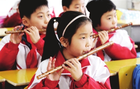 下午两点半,合上教科书和作业本,迎接欢乐时光!平直实验小学的整个校园成了孩子们的乐园。多功能厅里,小小舞蹈家身姿曼妙;小游园里,小画家们描绘月洞门和湖石假山;教室里,丝竹悦耳,一支短笛把孩子们引入轻盈婉转的艺术天堂……