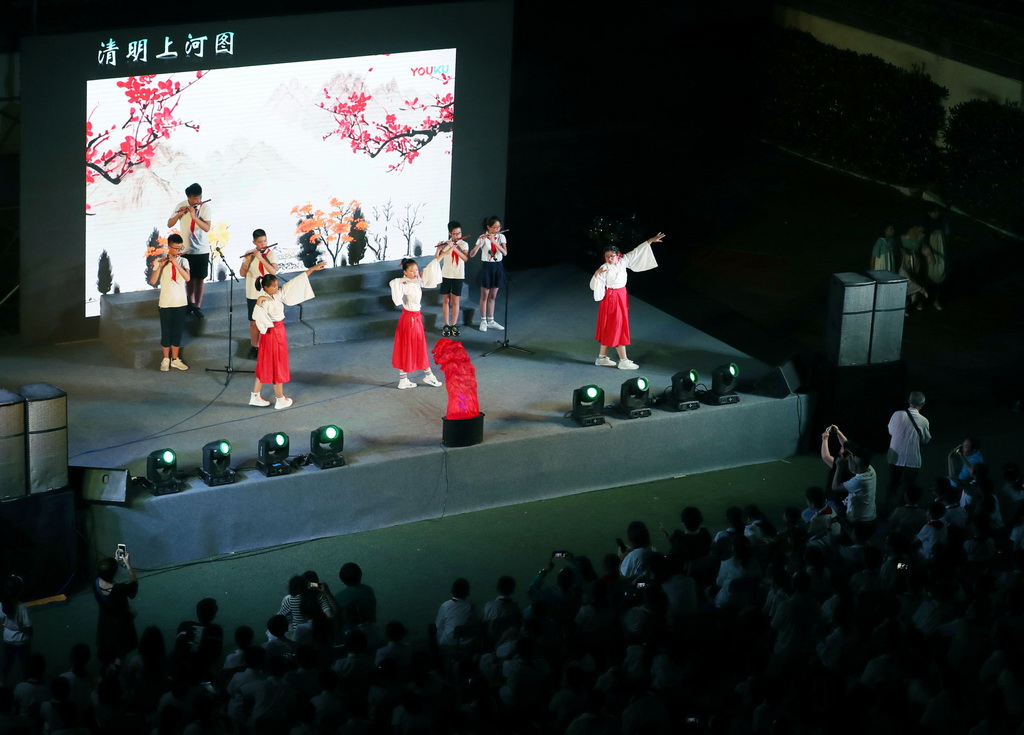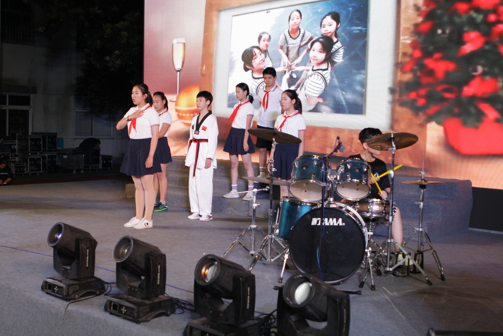 万彩网100线路的操场上,灯光交辉,235名六年级学生在这里举行隆重的毕业典礼。学生们载歌载舞,展示了舞蹈、器乐、合唱等节目,感恩学校老师的培养,感谢同学之间的友情,告别母校以高昂的斗志开启中学新时代。
