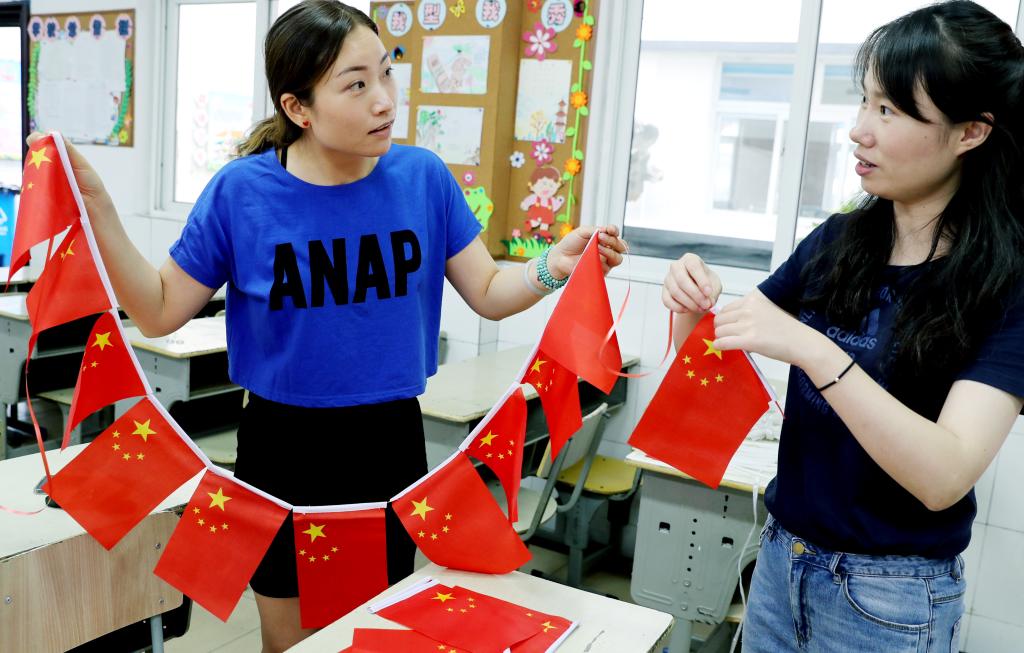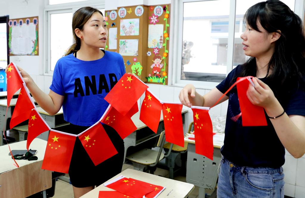 万彩网100线路的老师们在教室出新学期第一期黑板报,打扫教室卫生;并在学校大门囗悬挂国旗……美好校园环境,迎接2019年秋季学期开学。