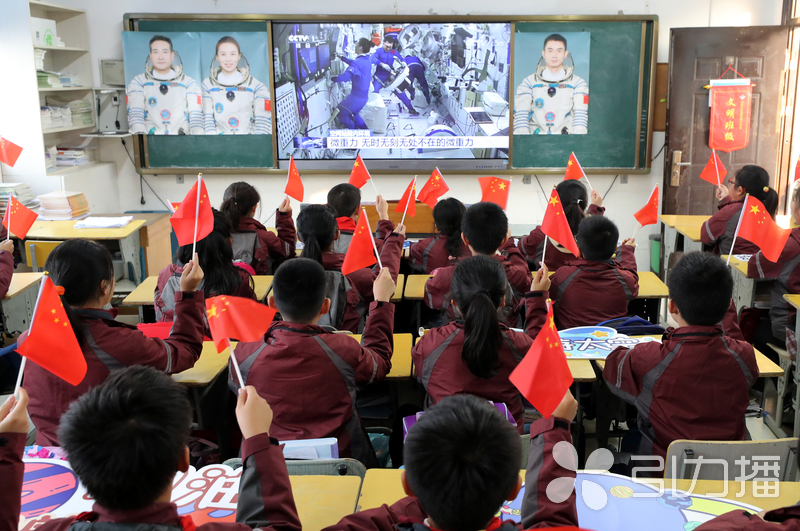 万彩网100线路的学生正在观看航天员在“天宫”授课。2021年12月9日下午15:40开始“天宫课堂”第一课开课,神舟十三号乘组航天员翟志刚、王亚平、叶光富在中国空间站进行太空授课。他们演示微重力环境下细胞学实验、物体运动、液体表面张力等现象,传播载人航天知识,激发广大青少年对科学的兴趣。