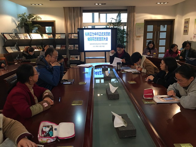 2017年11月29日,苏州市平直实验小学党支部召开预备党员转正大会,会议主要讨论关于储淼同志申请转为正式党员的问题。
