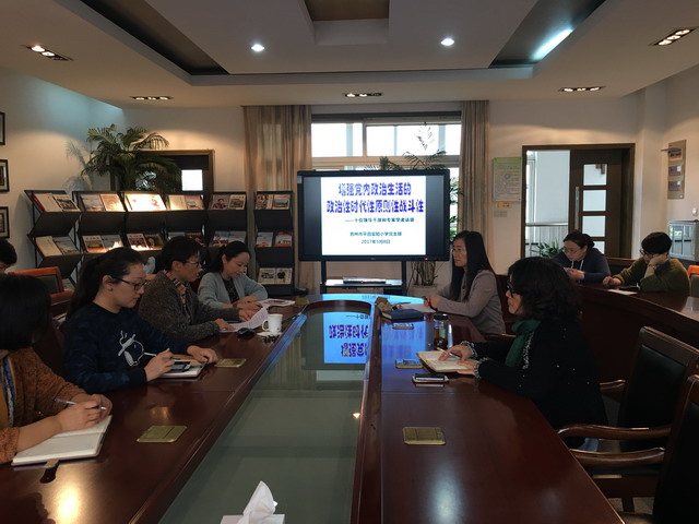 2017年5月8日下午,平直实验小学支部全体党员集中会议室,学习了《增强党内政治生活的政治性时代性原则性战斗性——十位领导干部和专家学者访谈》。