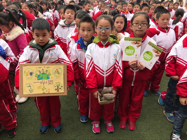 这次的“绿色助学计划”我校与社会公益组织联合。活动中,当徐校长结束亲切而热烈的启动仪式致辞后,苇叶公益服务中心负责人上台介绍了相关环保项目并对孩子们提出几点希望,赠送给孩子们泡泡希望种子和环保花盆。孩子们手捧小小的种子,小心翼翼的护在胸前,认真守护着自己的希望种子,他们要在阳春三月里种下这绿色的希望,用耐心与爱心收获成长的小芽。为鼓励孩子们人人争做环保小卫士,老师们在活动之前就做了精心的准备,在班级里播放“绿色助学计划”公益视频,让孩子们了解废纸收集再利用的知识,并进行废纸收集大行动。瞧,每个班级队伍的前面摆着一只只色彩斑斓的大纸箱,那是孩子们用画笔描绘的美丽纸箱,整整齐齐的摞着孩子们收集来的废旧纸张,里面已经被塞得满满当当。我们的老师、党团员志愿者都积极的投身到这项环保公益活动中来,每个办公室也都收集了废纸,言传身教,孩子们看在眼里,参与的积极性更高了。很多同学还发动全家一同参与,一早就从家里带来各种废纸,热情十足,大伙都兴高采烈的等着环保车来回收它们,让原本无用的废纸摇身一变,可以再次使用呢!为感谢孩子们积极的热情参与,学校与苇叶公益还为同学们准备了精致的环保文具作为小礼物,孩子们都很高兴参加绿色梦想计划,希望将来会有更多的贫困地区的孩子用上优质的环保文具,而这些文具,都是我们收集废纸,节约资源,保护环境,而形成的。看到孩子们张张灿烂的笑脸,连阴郁的天空也变得明亮起来。