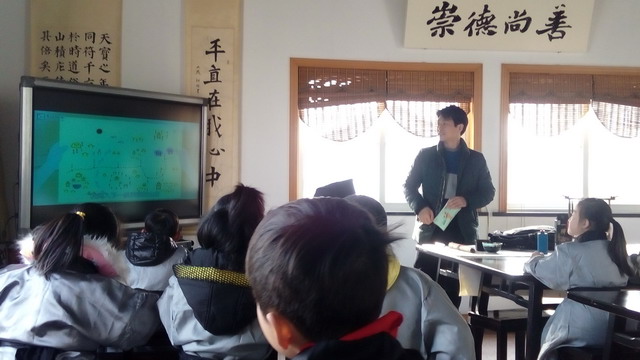 第二节课是由王老师带同学们学习甲骨文,王老师先给同学们播放了关于甲骨文的动画片,是一个关于乐活仙谷的故事。乐活仙谷是一个美丽的山谷,那里山青水秀,鸟语花香,人们过着快乐的生活,像神仙一样,所以这个山谷被称为乐活仙谷。王老师就是谷主,仙谷里有很多好玩的地方,有致远村,大有庄,五柳丘,长安镇,杏花村,以及梅山书院。在这些村庄里,还生活着很多性格迥异的人,有大山,小溪,子谦,含笑,炸糕李,若美,大肥,万里先生,余庆。仙谷里每天都发生着许多好玩的故事。孩子们一边听故事,一边学习甲骨文,感受中国文字独特的魅力!