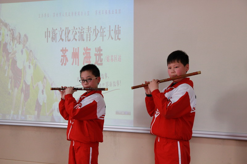 苏州市人民政府新闻办、苏州日报报业集团主办了“中新文化交流大使计划”活动,苏州市平直实验小学作为承办学校之一,前期在全校进行了层层选拔,从中选拔出10名选手,在12月2日在室内体育馆内进行最终大比拼,由苏州日报记者担任评委,项目有笛子独奏与合奏,有绘制绢宫扇,有制作虎头鞋,其中六(6)班胡静依同学在活动中脱颖而出,成为新一届中新文化交流大使一员,将代表苏州前往新加坡参加“环球行”青少年双语论坛,并进行表演,宣传苏式文化,为更多人了解苏州文化打开一扇窗。