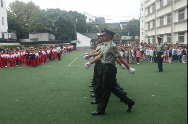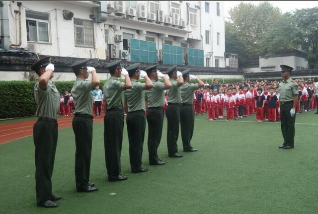 金秋时节,我们即将迎来的祖国六十七周年的华诞。930日,我们迎来了第三个法定“烈士纪念日”。在这个特殊的日子里,苏州市平直实验小学邀请了来自100医院的解放军战士们走进校园,现场演绎庄严隆重的主题升旗仪式,以简单而别具一格的方式喜迎祖国母亲的生日,深表对每一个精忠报国英雄的缅怀,有效地激发了孩子们的爱国情怀、强化其国防意识。