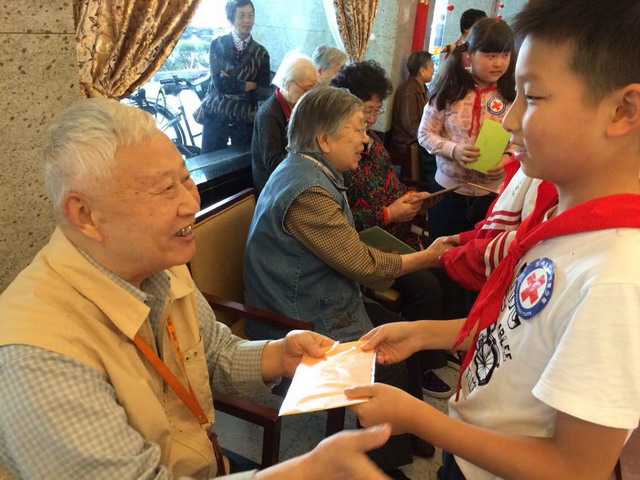 随后,同学们拿着制作好的重阳糕和贺卡来到了“苏信女儿家”敬老院,老人们看到孩子们十分开心,同学们纷纷拿出贺卡亲手送给爷爷奶奶,也表达了对爷爷奶奶的深深敬意和祝福。随后和老人们一起品尝起重阳糕。老人们高兴极了,不断的说平直的孩子真有心,每次孩子们的到来都让老人们倍感幸福。