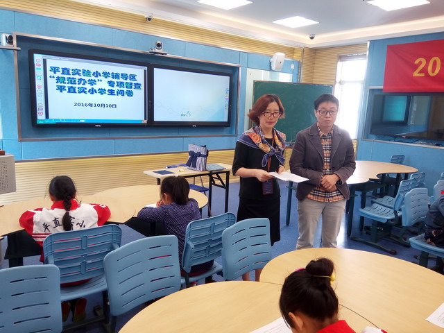 20161010日上午,姑苏区人民政府督导室专职督学尹艳与平直实验小学辅导区书记、兼职督学季文学同志一同对平直实验小学开展了“招生、收费、择校情况”的专项督导检查。