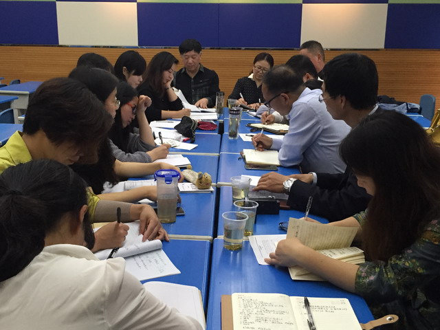 课后,在陆教导的主持下,各位参与教研的老师都谈了自己的学习体会。随后,专家王喜华老师对两节课做了细致深入的指导与点评。王老师对两位老师的课做出了肯定,在赞赏两位青年教师认真研课,悉心准备的同时更提出了自己的思考。其一是将课外阅读课内化的时候怎样选取恰当的阅读内容引入课堂。其二是课外阅读指导类教学的切入点到底是什么。其三是对课本教材解读的新角度。王老师的意见如高屋建瓴,为老师们在今后教学中如何有效落实阅读指导打开了思路。六位校长也参与了研讨-----“作者把情感变成文字,而我们上语文课,就是重新把文字赋予情感。”“语文就是把孩子带进教材里,再走出教材。”……