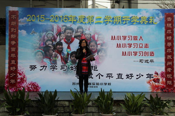 在同学们的掌声中,我校徐玉英校长致以新学期贺词,对同学们提出了新的希望,她赞扬了全体师生在上学期甘于奉献,勇于拼搏的精神,亦从学习习惯的培养以及和谐校园创建等方面向全体师生提出了新的要求。徐校长告诉同学们——习近平主席说:治理一个国家,关键是要立规矩、讲规矩、守规矩。俗话说“没有规矩,不成方圆。”我们平直的孩子们一定要“懂规矩、记规矩,守规矩”,成为一个德行兼备的优秀小学生!徐校长的谆谆教导和亲切祝福使平直实验小学的师生倍感温馨。