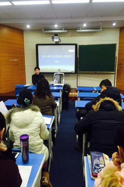 讲座中,王老师从“习作是重要的语用实践”入手,结合苏教版小学语文教材中的习作教学实例,深入浅出地从几个板块进行了细致的分析和指导。王老师指出,要指导好学生的习作,提升学生的习作能力,语文教师在教学中一定要做到:一、认真钻研并落实语文教材编排的习作具体要求;二、关注教科书编者在教材后面提出的语用训练;三、鼓励学生多写读后感进行练笔。同时,王老师也说,生活是学生习作素材之源,引导学生推开“感悟生活”之门,才能走进“读写”世界,享受文字的无限魅力