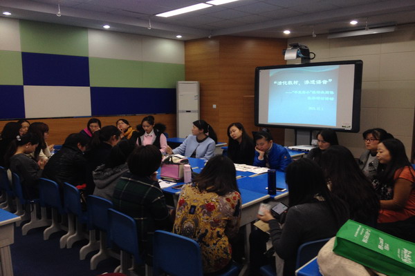 此次的共同体英语教学研讨活动使老师们对语音教学又有了新的认识,在平时的语音教学中,教师应该坚持规范有序的语音训练,培养学生良好的语音语调,提高学生学习英语的积极性,使学生真正迈入英语学习的大门。相信通过这样的活动,老师们会更好地驾驭语音教学,让学生们从中受益!