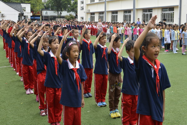 仪式虽然只有短短的半个小时,可对祖国的崇高敬意却留在了孩子们的心里,他们从特别而隆重的主题升旗活动中感受到了更深的含意,明白了身上的担子和责任,懂得了珍惜今天美好的生活!最后国庆升旗仪式在歌声《祖国祖国我们爱你》中圆满结束。相信这爱国情结也将从小植根于孩子心中,不断激发他们立报国之志、学报国之才,为创造祖国辉煌未来贡献自己的力量!