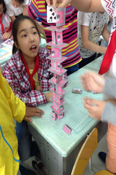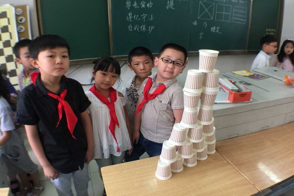 在已经进行的比赛中,备受关注的低年级组在纸杯叠叠高项目中表现出色,在短短的20分钟内,一、二年级的小朋友们用20个纸杯反复叠放,不断刷新纪录,最终由二(5)创造了本次纸杯叠叠高的最后纪录119厘米,真了不起!每一个参与者都充分感受到了那种热烈的氛围。中年级组的同学们个个如有神助,想尽各种办法把原本柔软的报纸搓、卷成“坚硬”的“柱子”,再运用科学构建原理叠出高塔,三(3)班的同学们创造了本次报纸叠叠高的最高纪录200厘米。真不得了!同样,在高年级组纸牌叠叠高的比赛中,同学们个个屏住呼吸,生怕一呼气九把轻飘飘的纸牌给吹倒了,最后六(5)班的同学们以94厘米的高度创造了本次纸牌叠叠高的纪录,真了不得!