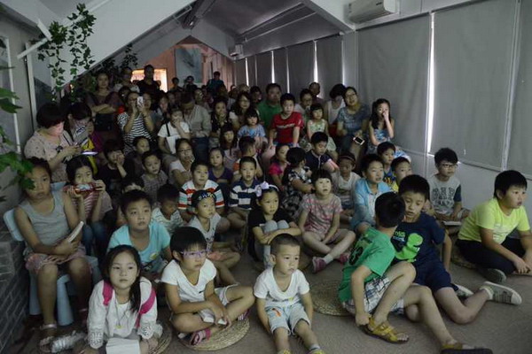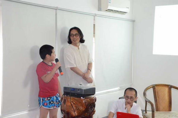 孩子们拿着手电筒,静悄悄地走进虫子的世界,或凝神观看,或低头轻语,或屏息留影……坐在虫子旁的铺团上,随着轻柔的吉他声,我们唱起了《虫儿飞》,在悠扬的歌声中,朱赢椿老师款款走上展台,用轻松幽默的话语向我们讲述了一个个他与虫子之间有趣的故事,平直实小的孩子们听得津津有味,有很多同学都迫不及待的把自己的故事和大家一起分享。