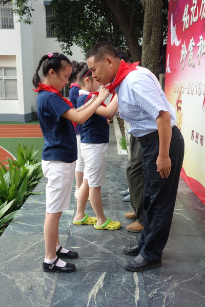 在本次开学礼上,学校邀请了五老为大家讲述美国抗日英雄肖特的事迹。美国抗日飞行员肖特,他是第一个击落侵华日机、击毙日本指挥官并为援华抗日牺牲的外籍飞行员。当年他就牺牲在苏州。为此,我校的学生们给市长伯伯写了一封信,呼吁在苏州公园重建肖特纪念碑,作为我们的爱国主义教育和国际主义精神的教育基地。大队委员作为代表宣读了《给市长的一封信》。我校季书记上台阐述了抗战70周年的历史意义,提出少年梦托起中国梦,要牢记习近平总书记的“六一”寄语,努力做到从小学习做人,从小学习励志,从小学习创新。