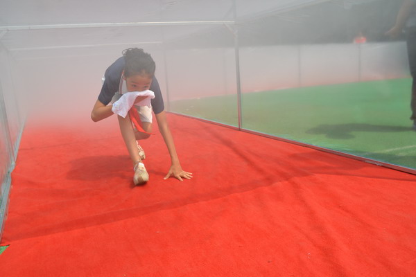 随后,各班派出三人小分队为代表参加急救逃生比赛。比赛现场模拟火灾突发事故,孩子们捂住口鼻、扶着墙面、匍匐快速穿过“火灾现场”。三人相互合作,顺利地完成各项任务。活动后,孩子们表示,虽然以前学校也有举行过应急演练,但是场景几乎都是跑楼梯,这次“烟雾通道”体验让我们有了一种身临其境的感受,赛出了我们的真本事,面对危险,我们都不怕!