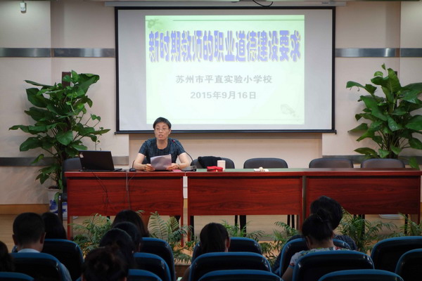 为进一步规范教师的从教行为,加强学校的师德师风建设,2015年9月16日下午,平直实验小学校全体教师集中报告厅,召开“师德师风建设推进会”。