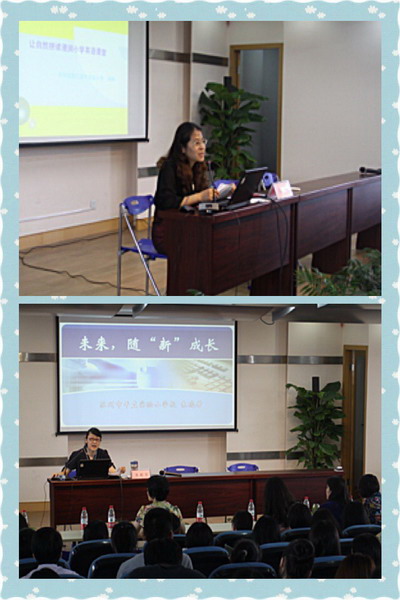 下午,两位名师从理论的角度进一步阐述了英语课堂教学新技术的变革,她们分别做了《未来,随新成长》与《让自然拼读浸润在小学英语课堂》的讲座,在座的各位老师聆听专家声音,领悟先进理念,收获颇大。