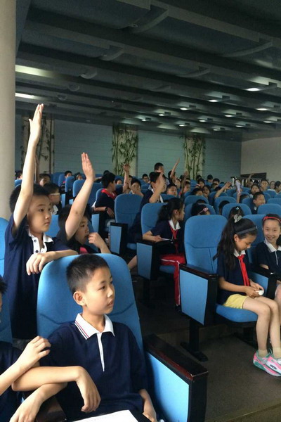 讲座以生动活泼的笑话开始,孩子们在有趣的氛围中,小脸露出了灿烂的笑容。伴随着欢声与笑语,承载着快乐与幸福,赵老师深入浅出地讲述了写作的两大法宝——想象、情感,孩子们听得津津有味,在思考中品味着写作的奥秘。他们不时积极举手发言,不时踊跃提出问题,融洽的会场气氛让大家如沐春风。