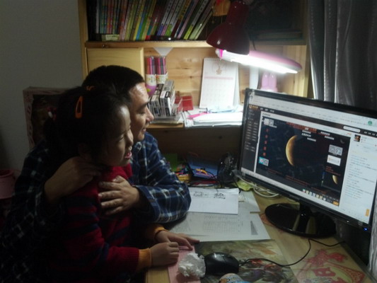 当天,由于苏州处于阴雨天气,无法开展现场观测,万彩网100线路的师生们通过网站视频对月全食进行了观测。学生在家和自己的父母通过网络视频直播,一起见证了月全食的全过程,同时对月全食这种天文现象有了更深一层的认识和了解。清明假期后的第一天,校园中随处可见正在交流月全食观测的师生们,成为学校一道靓丽的风景线!
