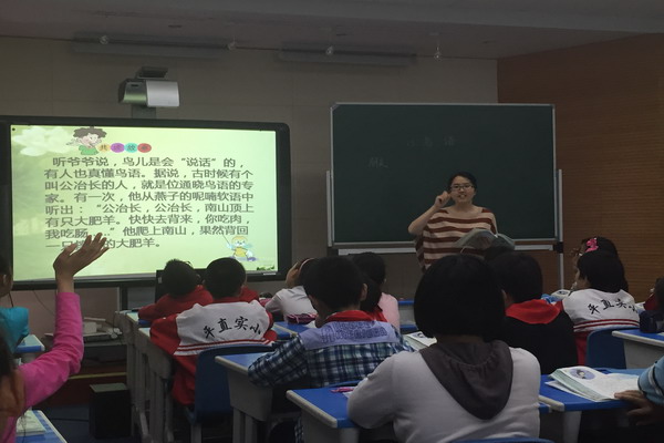 张程晓老师执教的《鸟语》第二课时,引导孩子们充分利用多媒体手段创设“鸟语”的情境,在朗读中感受鸟儿富有内涵的啼叫声,在朗读中感受鸟儿为人们增添的乐趣,在朗读中体悟如何成为鸟儿的知音。孩子们读得津津有味,学习兴趣和积极性得以激发。同学们通过多种方式读着充满趣味的文字,想象鸟儿们的丰富的语言,同文中的小主人公一起与鸟儿们做心灵的沟通;通过谈出自己独特的感受,同学们也不由自主地发出“鸟儿的确是人类的好朋友”这一感慨。随后,张筝老师执教了《爱因斯坦和小女孩》第一课时。尽管是第一课时,张老师把自己当做针线,一头牵引孩子们,一头牵引文本,从字到词到句,扎扎实实指导孩子们读好课文,为第二课时的教学夯实基础。同时,张老师也尝试在第一课时中,引导孩子们在朗读中边读边思,实践提高概括能力。