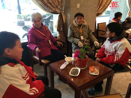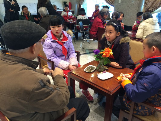 围坐在会议室里,爷爷奶奶和孩子们亲切地聊着天。孩子们开心地和爷爷奶奶们讲着,春节假期里去海南、去厦门、去北京……的种种见闻,领略那里的风土人情。我们学校还有些孩子跟随着学校的雏鹰假日小队,走进农村,去体验纯正的苏式新年。“爷爷,乡下的新年要做团子,要放炮仗,要拜‘灶王爷’,行礼,真稀奇啊!”孩子们讲述着新年中他们的所见所闻。“爷爷奶奶,你们的新年过的怎么样呢?你们小时候的年又是怎么样的呢?”孩子们围坐在老干部爷爷奶奶身边,听着爷爷奶奶讲新年的故事。欢声笑语让老人们倍感暖心。