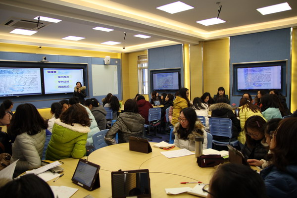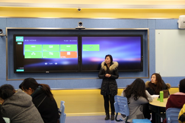 2015年3月4日,我校“未来教室”全员培训在教学楼西四楼未来教室进行。由华中师大金婷讲师对未来教室中StarC云端一体化教学平台的具体应用进行了专题培训,同时对未来教室教学设备的操作使用、课件制作展示、互动学习平台、工具和资源的使用也进行了培训。老师们共同学习了StarC云端一体化学习平台,体会着信息化带来的教育冲击,也感受着StarC云端一体化学习平台带给师生们的便利。老师们热情高涨的同时也倍感挑战性,纷纷讨论有价值的疑问:何如实现一块屏幕上使用PPT讲课,另一块屏幕同时播放视频?如何实现全程录课?金婷讲师手把手指导演示这个平台的海量教育教学资源和先进的同屏显示、整合等功能,令老师们赞不绝口。进一步操作了如何将交互式电子白板和“未来教室”互相结合,通过“白板”和“平板”的双板结合,更好地为有效课堂服务。