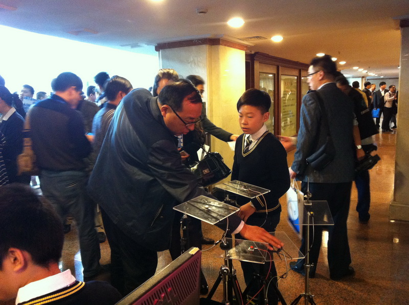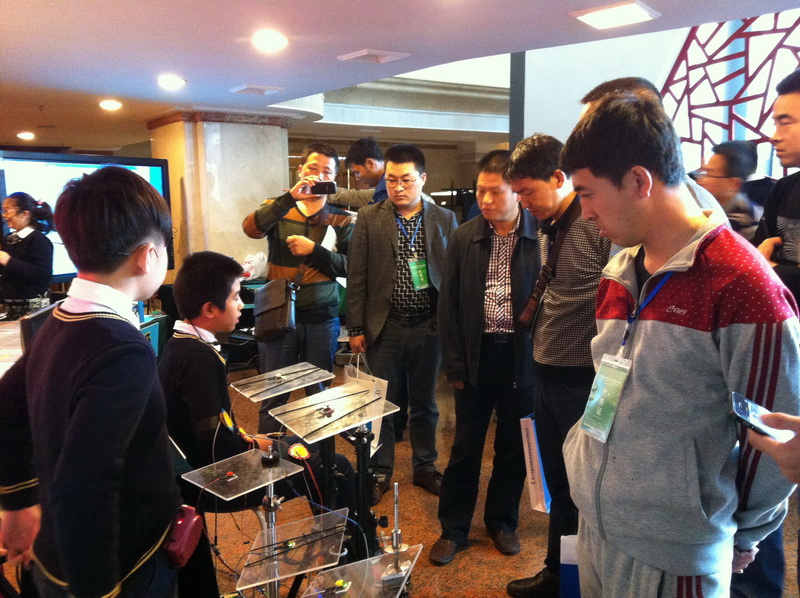 2014年10月23日,第十四届中国教育信息化创新与发展论坛在苏开幕。活动吸引了来自海内外学术界、企业界的40多位著名专家、学者以及全国各地千余名教育界人士参加。论坛现场,在姑苏区展示区里,平直实验小学六(2)学生宋喆文正敲击着自制的电子版架子鼓,六(4)学生许书恺与之配合弹奏着自制的智能穿戴型人体钢琴,参会人员纷纷驻足观看并询问,孩子们绘声绘色地向大家介绍着研发出来的创新项目,并热情邀请专家们进行互动体验,新技术的引入赢得了专家们的阵阵惊叹。