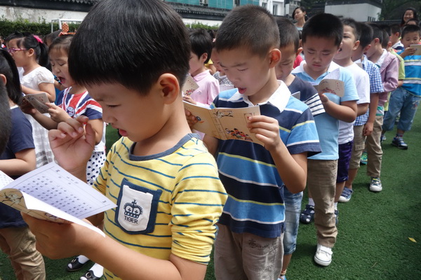 活动中,全校师生在国旗下宣誓,“培育社会主义核心价值观,从娃娃抓起,我们小学生实践社会主义核心价值观。要勤学、修性、明辨,笃实,做一个对社会主义国家建设有贡献的人。”各年级在对应的标牌下,齐说社会主义价值观的三个精神层面内容。孩子一遍又一遍地大声念,一句又一句,字字入心。当下,社会主义主流价值观的深入践行,是全社会的一大行动,“合抱之木,始于毫末”,孩子们,作为社会的新生代力量,是国家的希望,民族的未来,从小做起,认真学,认真行,爱国守法、明礼诚信、友善讲仁,在学习和生活中,动动小脑,动动小手,将民族兴旺的大任幻化为点点滴滴的行动,加以落实,这是我们当下能为国家和社会所尽的应有责任。紧接着,一年级的小朋友们在正副班主任的带领下,在老生们的欢迎鼓掌声中,热切地呼喊着“我爱平直,我爱学校”,兴高采烈地来到操场,举行他们进入平直以来需经历的第一个传统礼仪——“入学礼”暨“开笔礼”,接受全校师生给予他们的开学第一课。活动中,大队辅导员亲自讲解了开学第一课的内容,孩子们听得津津有味,小眼睛只放光芒。一册新入手的《玉兰经》是孩子们进入学校以来得到的第一份礼物,薄薄的书页中,承载着大大的道理,一阵秋风掠过,阵阵书香溢满校园。在行“三礼”的环节中,孩子们端端正正地向校领导一行爱校礼,向一年级的班主任们二行尊师礼,向同窗的学长学姐们三行有爱礼,深深的鞠躬,每一礼表达的是满满的感激。“入学礼”中,最数孩子们期待的莫过于开笔仪式,徐校长亲自走上台为新生们削起一支支铅笔,孩子们效仿校长的一举一动,亲自实践,开启人生中的慎重一课,卷卷的笔削中,有老师们绵绵的爱,有爸爸妈妈满满的期待,小朋友们认认真真地手捧铅笔,励志好好学习,天天向上。