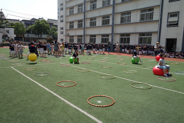 5月31日上午,操场上依次进行着各年级的趣味运动会。除了常规的跑步、跳绳之外,还有充满趣味的“跳圈圈接力”,每班的运动员们都全力以赴,各班的拉拉队们卯足了劲。操场上,笑声和加油声此起彼伏,奏响了一曲快乐的乐章。