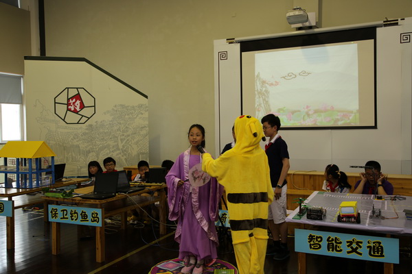 2014年6月3日,平直实验小学师生参加了苏州市凌秋虹名师工作室观摩展示活动。平直是一所百年老校,学校有笛子、诵读、绢宫扇、舞蹈等校本课程,传承着传统文化;同时又是苏州市的一所艺术特色学校,学校的艺术课程丰富,同学们发展全面,因此学校想到将信息与艺术交融,用Scratch编写校园艺术。