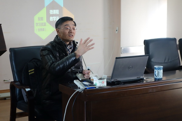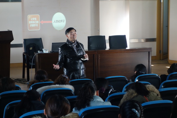 金馆长通过翻转课堂的视频故事,介绍了翻转课堂的由来,并以视频加问题的形式着重讲解了为什么要翻转,在哪里翻转,怎样翻转,让大家深刻理解到了“翻转课堂”是突出“个性化的学习”与“个性化的指导”观点,明确了翻转课堂的实质:在课堂外完成知识学习,让学生在课堂上完成知识吸收和内化的新型课堂教学结构。金馆长又从学习进入“微时代”为切入点、从微课程界定、微课程体系、微课程教学模式等几个方面就微课程进行精彩的阐述和分析,进行了微课程的制作和实例展示,并从课程的直观性、趣味性、启发性、实用性等几个方面进行了客观的分析与评价。