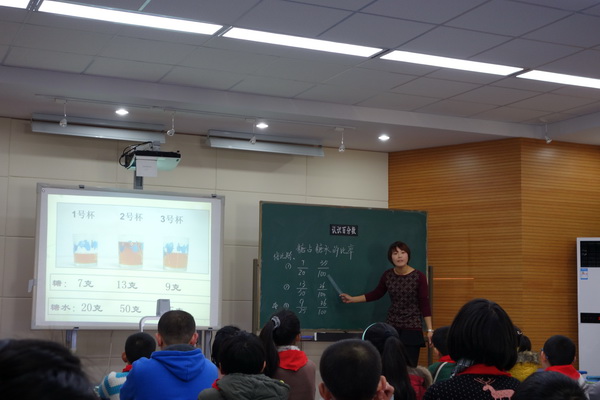 活动中,五位来自共同体各个学校的老师分别执教《九加几》、《认识分数》及同课异构《认识百分数》,胥香小学王东霞老师思路清晰、扎实有效;大儒中心小学夏晓燕老师教态亲切,充分挖掘各种教学资源,激发学生的学习兴趣;金阊外国语顾萍老师语言流畅、善于联系数学与生活的联系;城西中心纪文艳老师循循善诱、拓展学生的思维;平直实小****老师围绕着前置性作业的理念,大胆取舍、整合教材。这五位老师各自结合“前置性作业研究”以独特的教学方式给在场的听课老师留下了深深的印象。