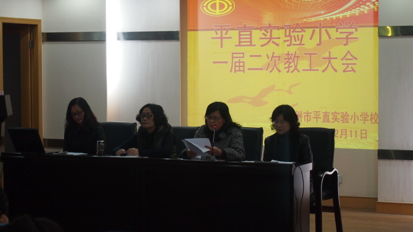 2013年12月11日,平直实验小学隆重召开了一届二次教职工代表大会。当天下午与会代表汇聚一堂,以高度的政治责任感和主人翁精神,充分行使自己的民主权力,积极为学校发展献计献策。