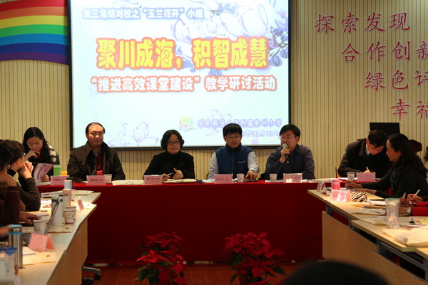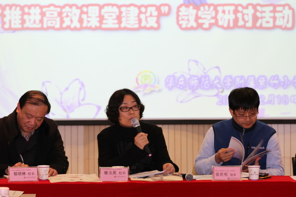 苏州市平直实验小学徐玉英校长向大家汇报了组长校一年来的工作情况,并对下一轮的组长校——杭州采荷一小的下阶段工作设想提出了宝贵的建议。徐玉英校长希望四校能针对各自的发展瓶颈找到新教育的途径,在新媒体支撑下进行更多的教学探讨。
