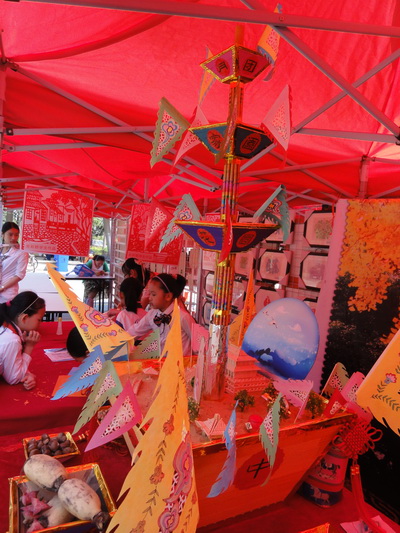 这次的参赛作品——“香斗”是由美术张宁老师设计并制作的,在学校老师和学生们的配合下,历经10多天才完成。“香斗”是中秋佳节使用的祭奠品。中秋佳节,斋月宫,期望月儿圆,人团圆。