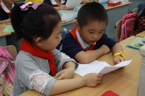 学生在班主任老师的指导下认真阅读“安全承诺书”
