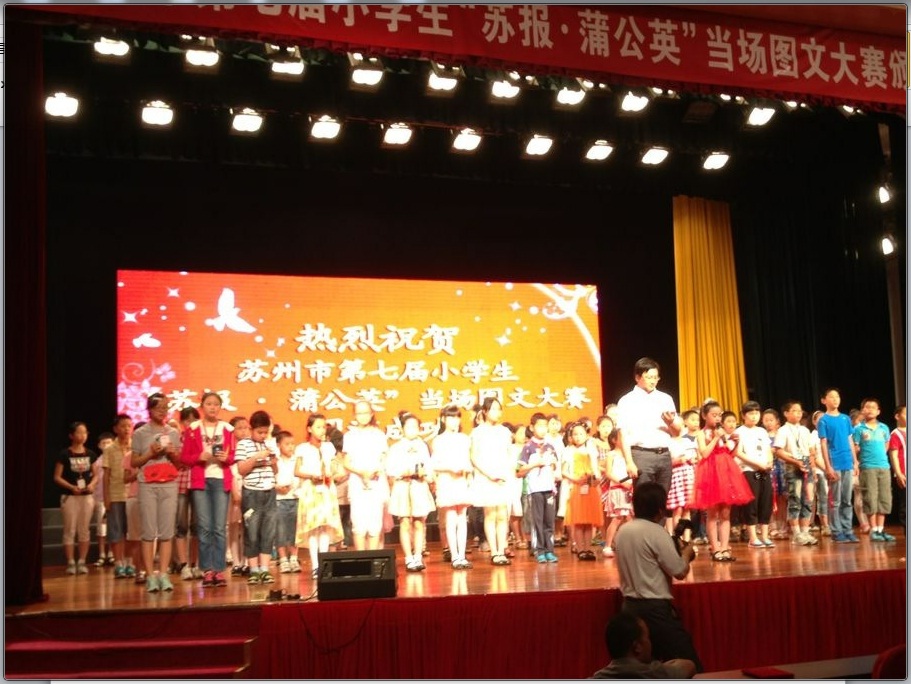 市、区多位领导先后发言祝贺获奖小选手,亦祝贺本次大赛圆满成功。活动中,“第七届蒲公英作文大赛”中或特等奖项及入围“百佳”的100名文学少年上台领奖,一张张洋溢幸福的笑脸充满着自豪。苏州市平直实验小学六(3)班的王子欣等三位同学在学校分管语文行政赵康副校长的带领下参加了“蒲公英大赛百篇佳作”的授奖仪式,他们的成功,是平直的骄傲。