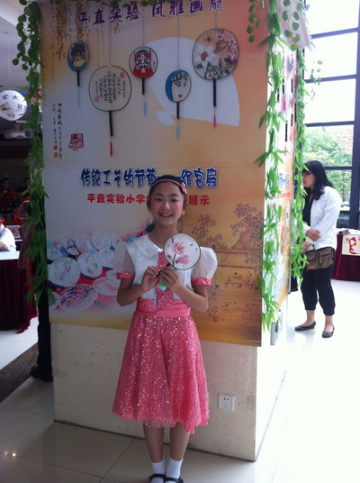 走进青少年活动中心,首先映入眼帘的是吴文化特色DIY创意展示,有藏书票、核雕、水韵青华……其中也有我校的孩子展示的绢宫扇作品,述说着属于苏州这个古典城市的点点滴滴。一把把团扇画面精致、创意独到,在细洁的真丝绢面上绘以山水、花鸟、人物,并题有名人诗句,极具观赏性,造型美观,古色古香,高洁典雅。与此同时,红领巾跳蚤市场也开展得有声有色、热火朝天的,大伙把家里闲置物品或具有吴文化特色的手工小物件带来,进行义卖,再把义卖所得作为爱心献出。我校的李一诺和钱新宇两位同学也参与其中,朗朗的叫卖声中,有着他们满含的热情。观赏摊位的学生或老师一波接着一波,对小学生的动手能力与创造力赞不绝口。
