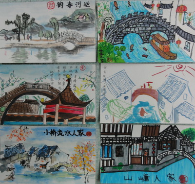 2014年大运河要成功申遗是我国务院确定的一项重大文化工程,苏州是重要的运河古城,因运河衍生的文化遗产数量也多,类型丰富、价值很高,而苏州又是国际专家前来中国重点考察的城市之一,为了进一步传播大运河遗产知识,更好地激发广大学生爱国爱家乡之情,积极引导他们参与到运河遗产保护行动中来,我校中高年级学生在美术老师们的指导、带领下,满腔热忱地参加了苏州市教育局、苏州市文物局与苏州市关心下一代工作委员会联合开展“我的运河我的家”苏州市中小学生画信支持大运河申遗活动。双休日里,他们走出校园、走入街巷、走近运河,零距离观察苏州古城的各种风貌,在古城墙下、古石桥上以及平江、山塘等历史街区里徜徉,认真体会苏州运河人家的生活精髓,了解姑苏民俗风情,回到学校认真回忆创作,用画信的方式表达自己的所见所闻、所思所想,他们有的用儿童画方式画出了苏州小桥流水人家风情;有的用国画方式笔墨挥洒出苏州古运河两岸的无限风光;有的用水彩画方式画出了姑苏老城门的古韵风雅……