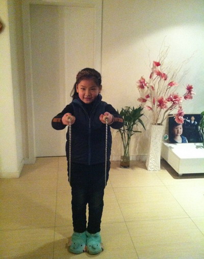 一(6)班的陈佳妮小朋友这样写道:“元旦放假,真开心!不过天气好冷!来跳个绳吧,能锻炼身体也能让身体变得暖和,我的姿势还不错吧~我要跳100个!预备,起!” 可爱的小家伙!用跳绳来取暖,可真是个好办法呀!
