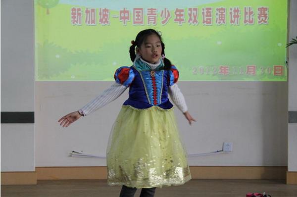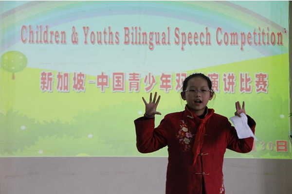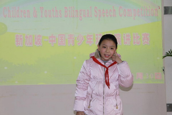 为进一步提高我校学生的英语听说能力,近期组织学生参加了由共青团苏州市委员会、苏州市人民政府外事办公室、苏州市青少年活动中心联合举办的2012-2013年度“新中青少年双语演讲比赛”初赛。我校一至六年级学生踊跃参加,无论是演讲的语音语调还是服装道具,大家都做了精心的准备,英语老师精心指导。苏州赛区的比赛结果已揭晓,我校共有194位学生分别获得小学组的一二三等奖。获奖的学生有望去新加坡参加更高级别的比赛,期待着他们有更出色的表现!