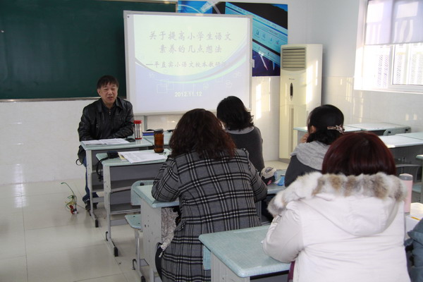 11月12日下午,平直实验小学语文教师齐聚一堂,认真听取了王喜华专家就《关于提高小学生语文素养的几点想法》所做的讲座。与其说是讲座,不如说是一次交流,谦虚的王老师让在场的语文老师们不要做笔记,只需要听听想想,有所收获即是达到了本次活动的目的。