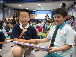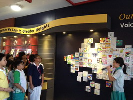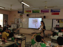 参观完校园后,我们和其他同学一齐走进了咏芳她们的教室进行随堂听课。“叮铃铃!”上课了,我们不用等老师说就早早地端坐了。新加坡老师上的课十分生动,所以我们大家听课十分认真。开始上华文课了,老师突发奇想地让我们来自中国的小朋友当新加坡小朋友的老师,教他们朗读课文。毕竟中文是我们的母语,比起新加坡小朋友来我们的中文水平还是挺可以的。不过他们的英语水平比我们强多了,除了华文其余的课都是用英语上课。