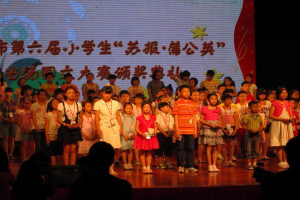 市、区多位领导先后发言祝贺获奖小选手,亦祝贺本次大赛圆满成功。本次大赛的100名文学少年上台领奖,一张张洋溢幸福的笑脸充满着自豪。我校一(2)班钱肖宇轩、五(4)班郑佳琦、五(5)班季文艳三位同学的参赛作文光荣地入选为“蒲公英大赛百篇佳作”。